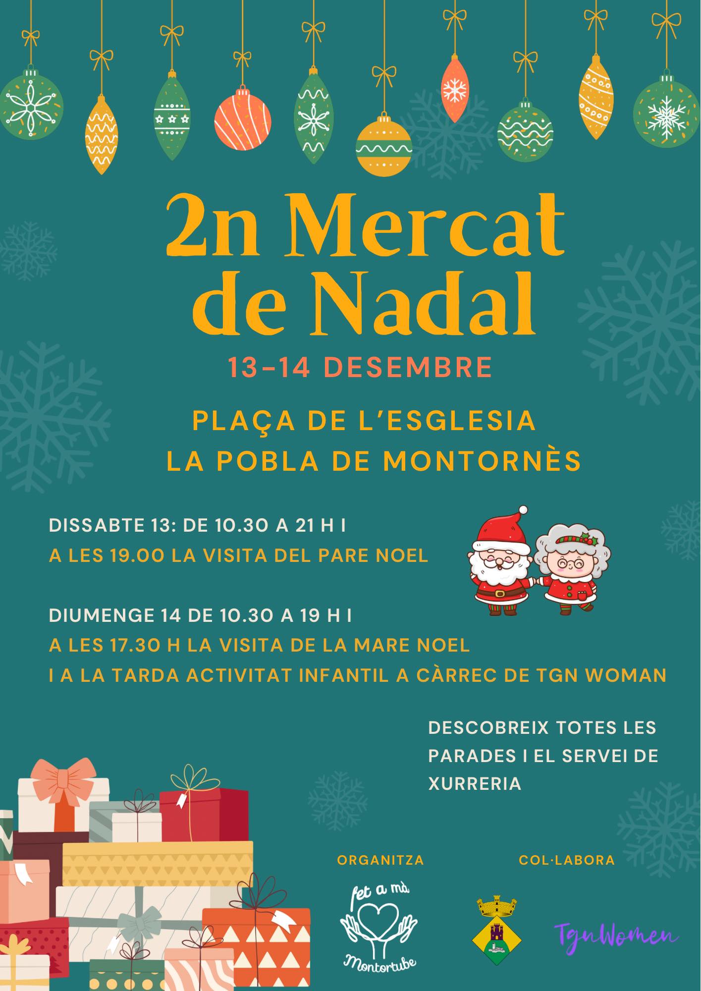 Els propers 13 i 14 de desembre celebrem el 2n Mercat de Nadal a la Plaça de l’Església, un punt de trobada ple d’artesania local, productes únics, regals especials i ambient nadalenc.
